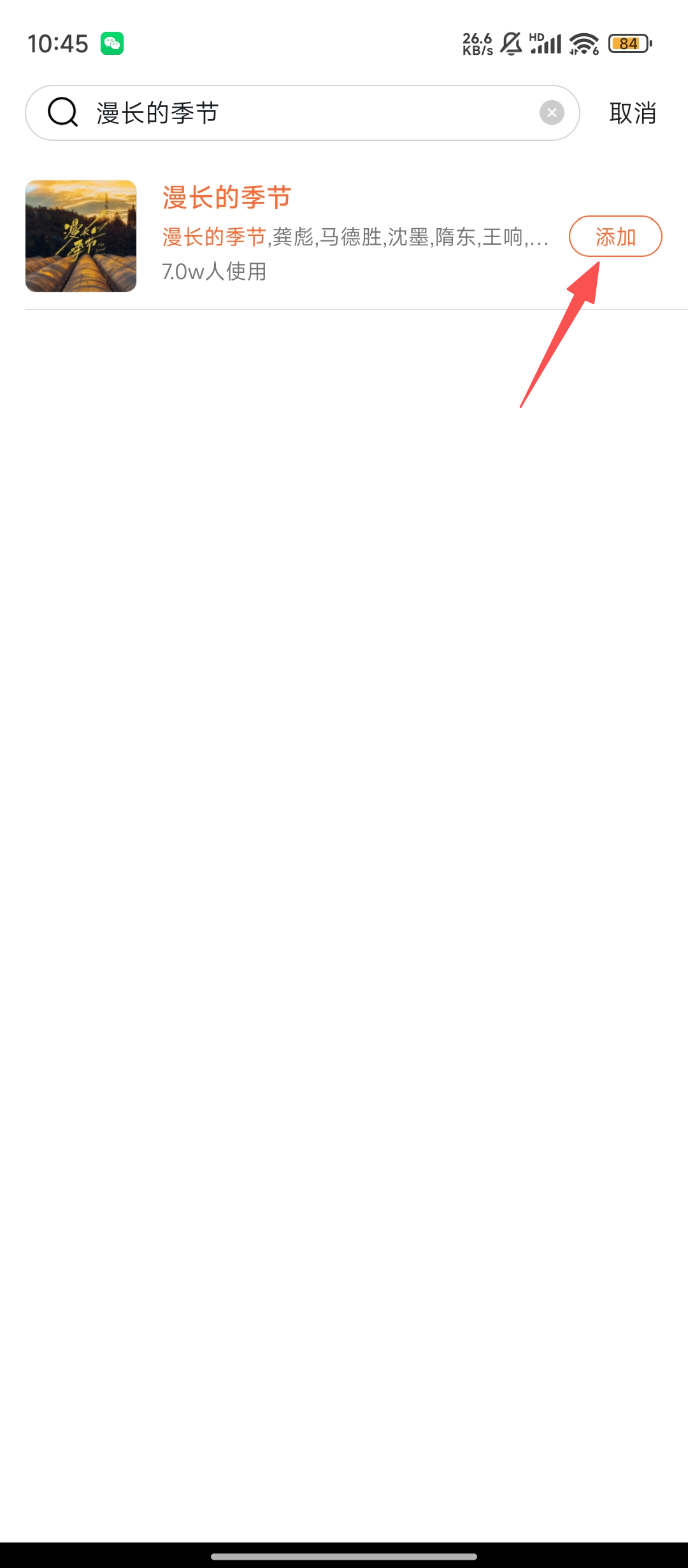 4、等搜索结果出来,比如找到【漫长的季节】词库,我们直接点击右边的【添加】按钮,就能把这个词库加入啦。