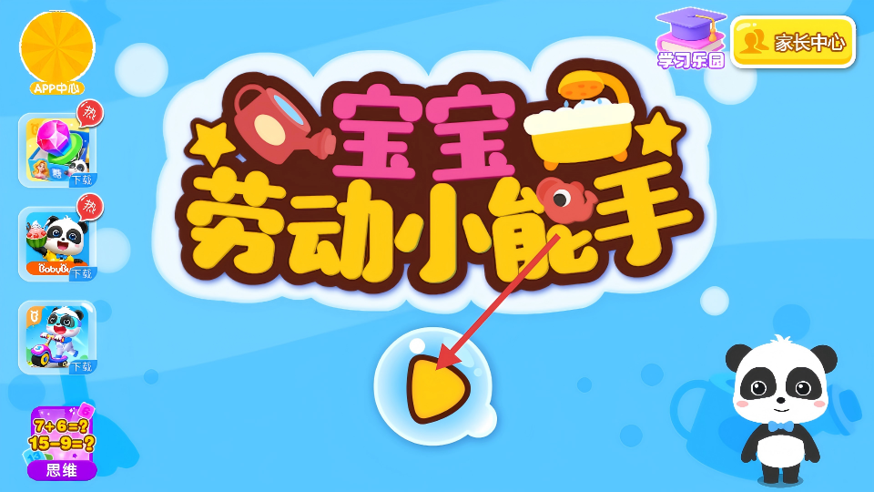 1、点击【宝宝劳动小能手】,在游戏界面点击开始按钮,进入游戏。