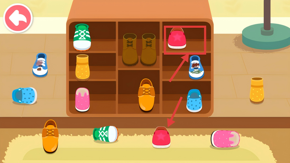 4、把散落的鞋子,对应放入鞋柜中合适的格子里。