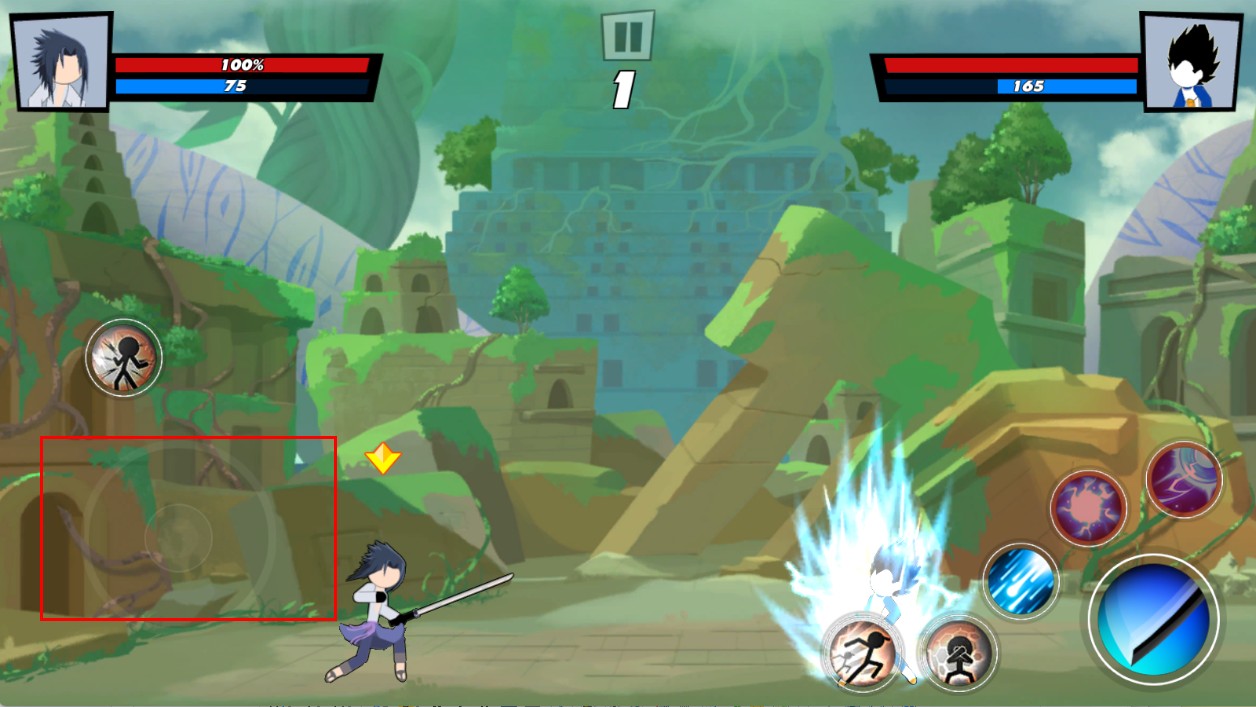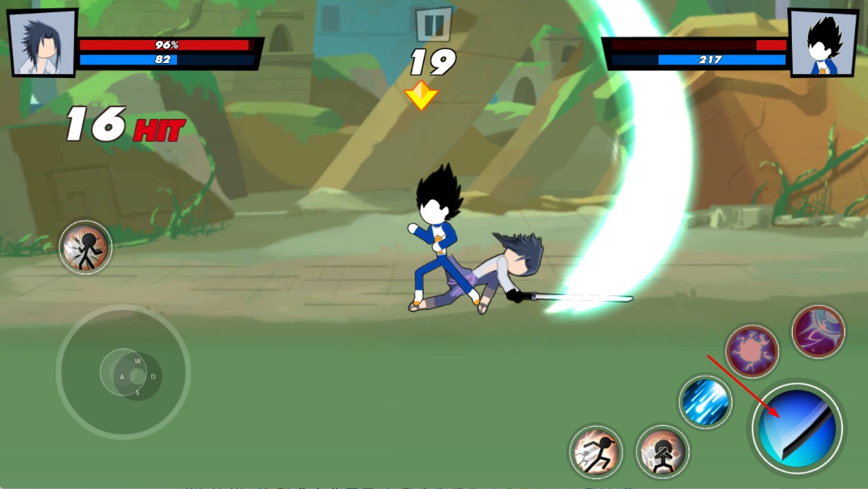 4、点击右侧攻击按钮,释放技能,连招打击敌人,积累伤害,击败对手。