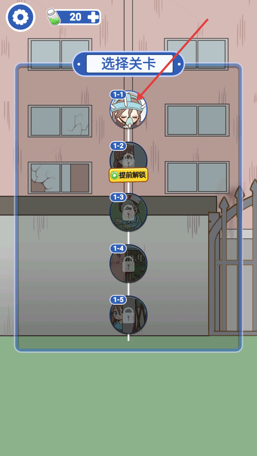 2、在关卡选择界面,点击【1-1】关卡,开始游戏。