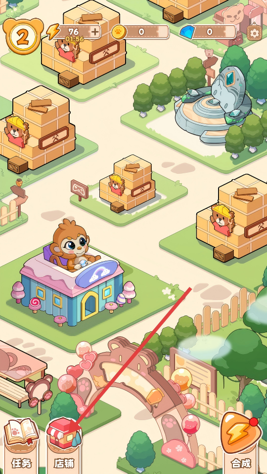 1、进入【小熊森友会】游戏后,点击【店铺】,进入店铺相关界面。