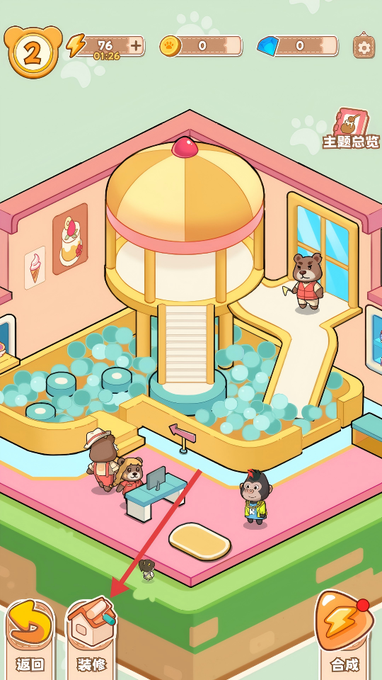 2、剧情推进机制:通过装修进度触发丰富剧情内容,讲述熊大重振乐园的心路历程和与动物居民的互动故事。