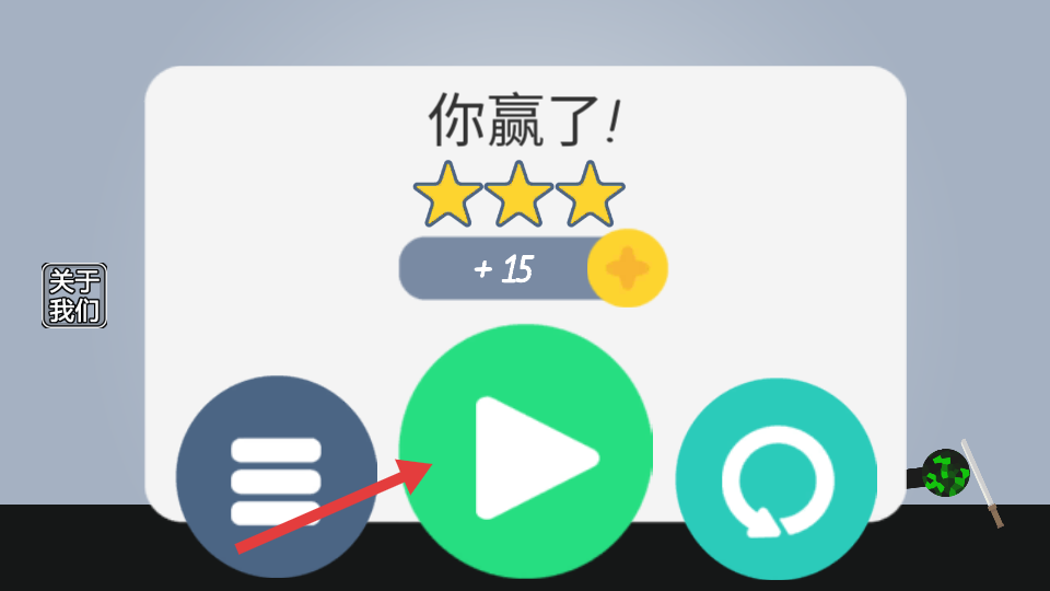 4、关卡胜利后,点击绿色的播放按钮,进入下一关继续挑战。