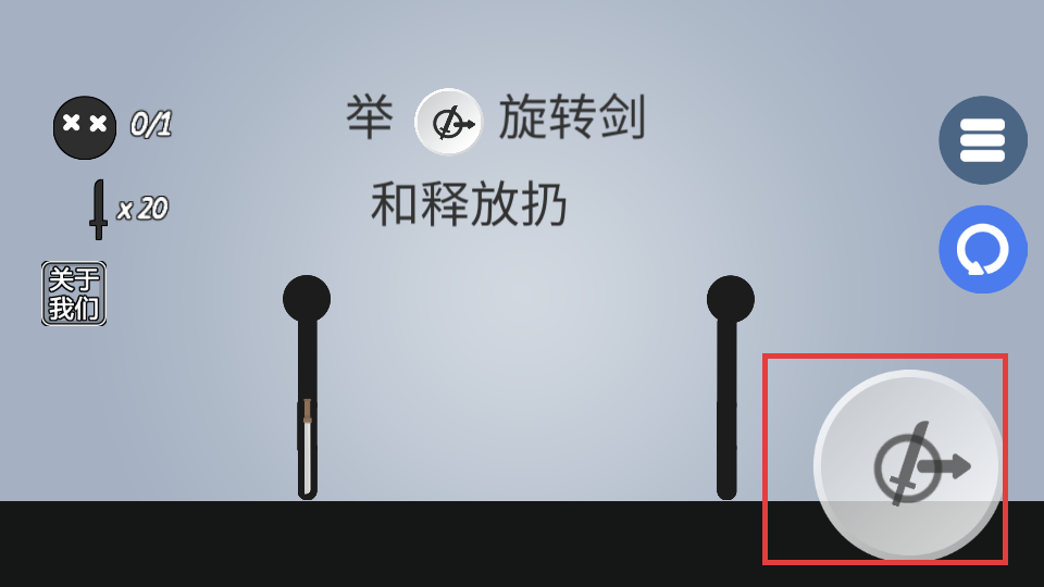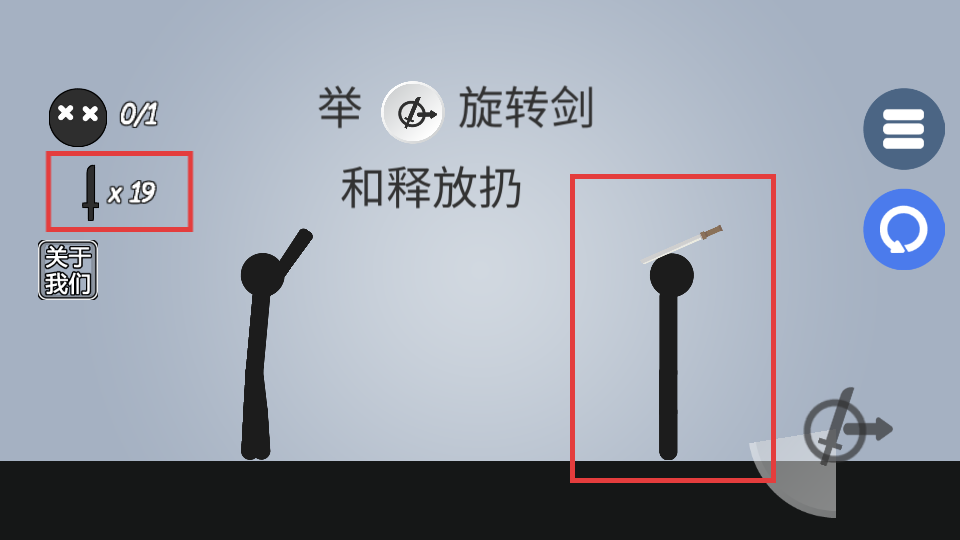 2、操作右侧的旋转按钮,按照【举-旋转剑和释放扔】的提示,准备扔剑。