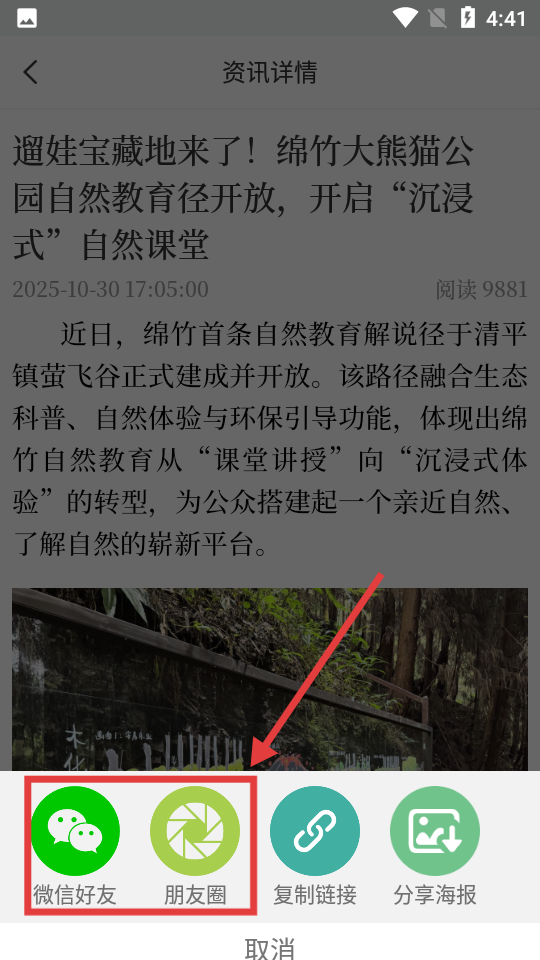 4、在分享选项中选择分享渠道(如微信好友、朋友圈),完成分享操作。