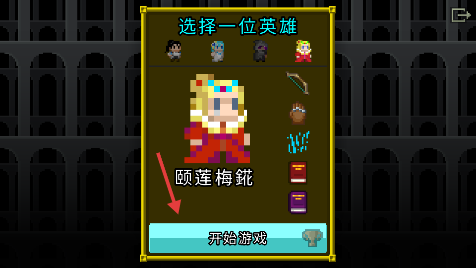 2、在“选择一位英雄”界面,选好英雄后点击【开始游戏】,进入地牢探索。
