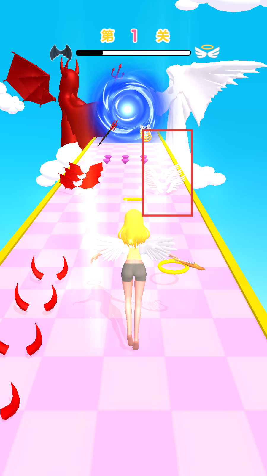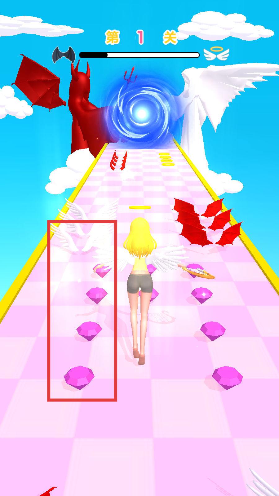 2、在关卡中,收集粉色钻石等道具,同时靠近天使相关元素。