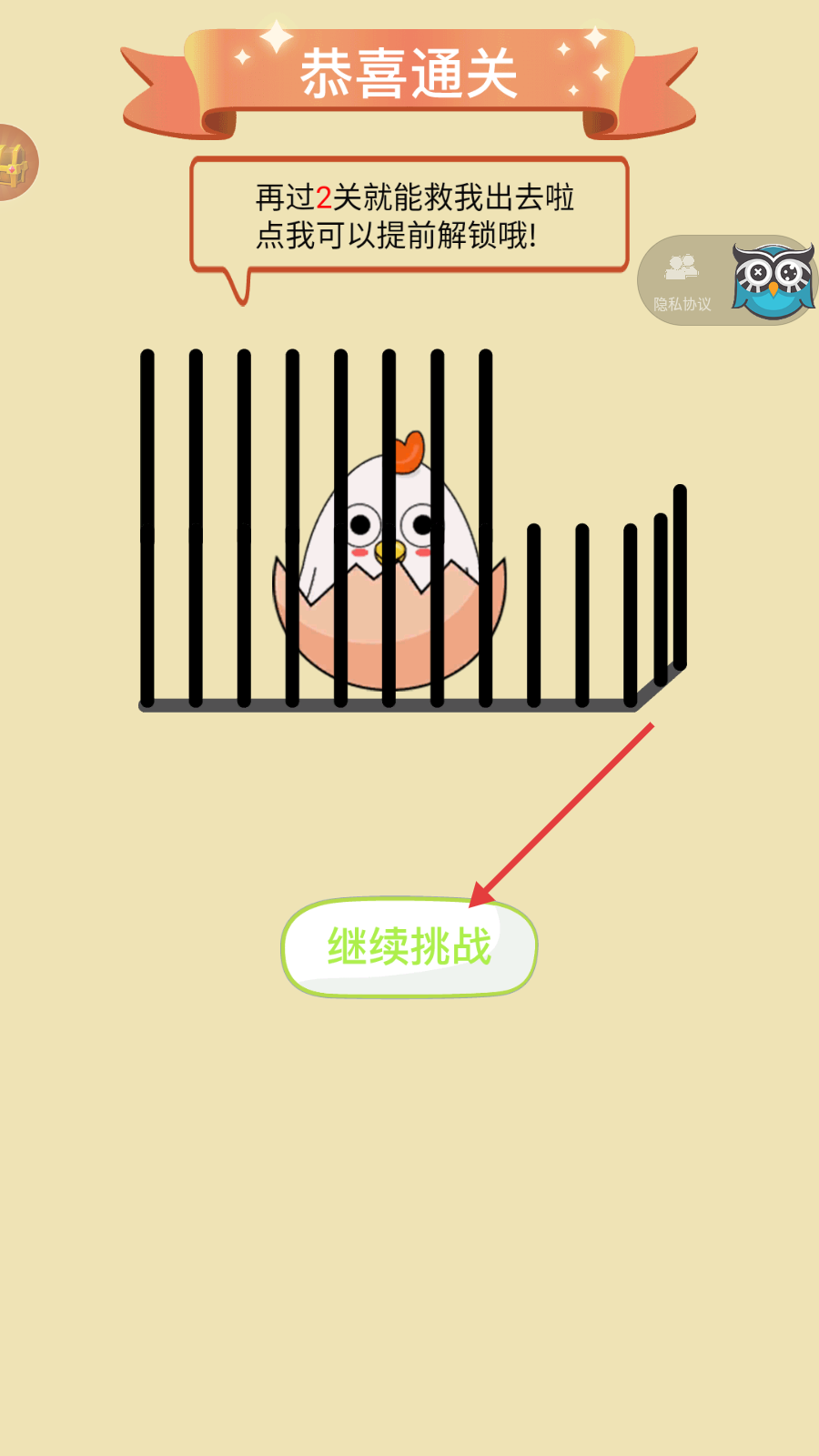 4、关卡通关,点击【继续挑战】,向救出栏中角色的目标前进。
