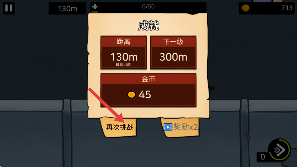 4、游戏结束后,点击【再次挑战】,重新开始游戏。