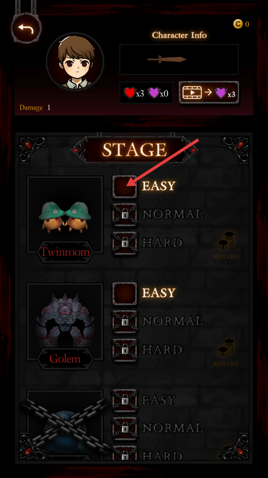 2、在关卡选择界面,点击【EASY】难度关卡,开始游戏。