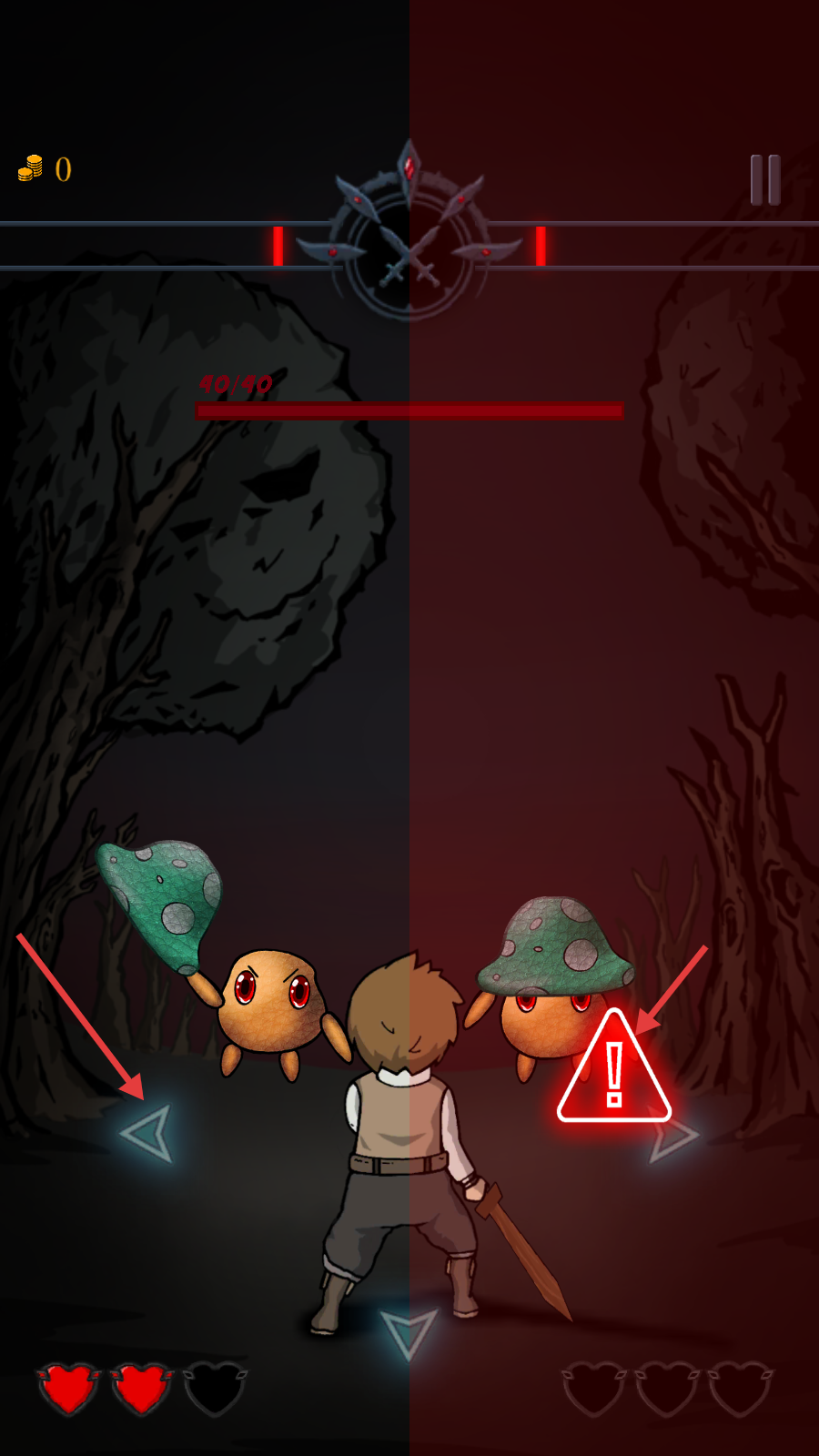 4、根据提示,点击对应方向键,躲避蘑菇怪攻击并反击。