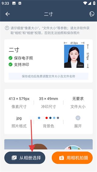 2、点击【从相册选择】导入需要处理的证件照,进入照片编辑界面。