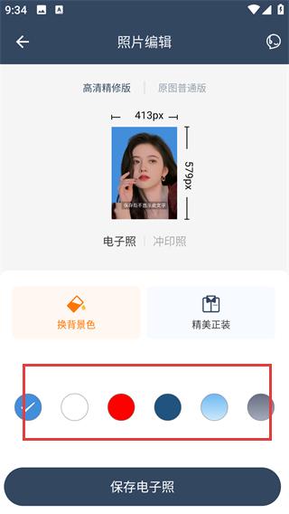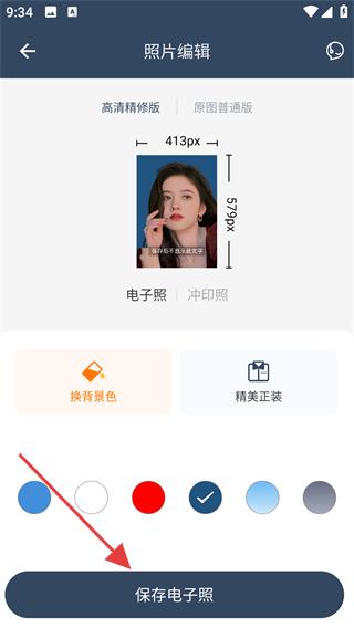 4、确认底色更换效果后,点击【保存电子照】,即可将更换底色后的证件照保存到手机。