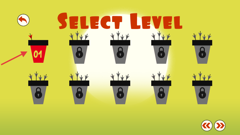 2、在关卡选择页,选择标有“01”的红色关卡,进入第一关游戏。