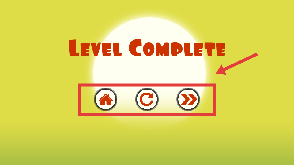 4、成功消灭火柴人后,关卡完成,界面显示“LevelComplete”,可选择返回主页、重玩或进入下一关。