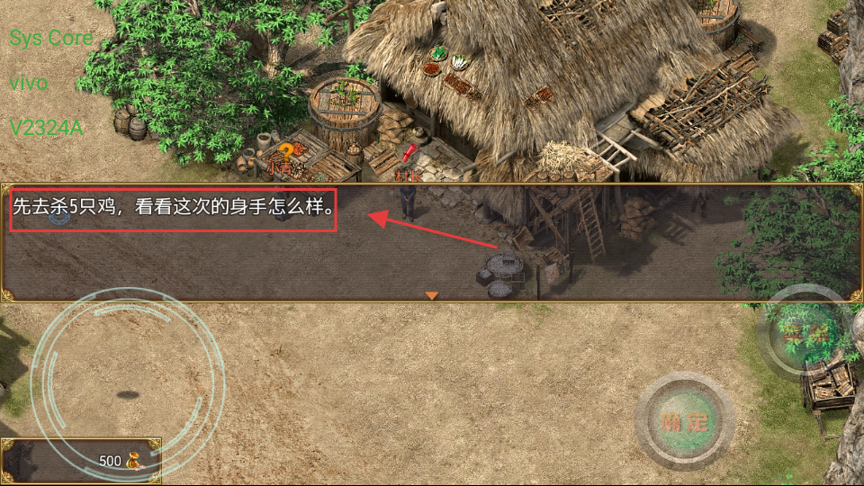 2、新手村接取【先去杀5只鸡】的任务,准备开始初期战斗练习。