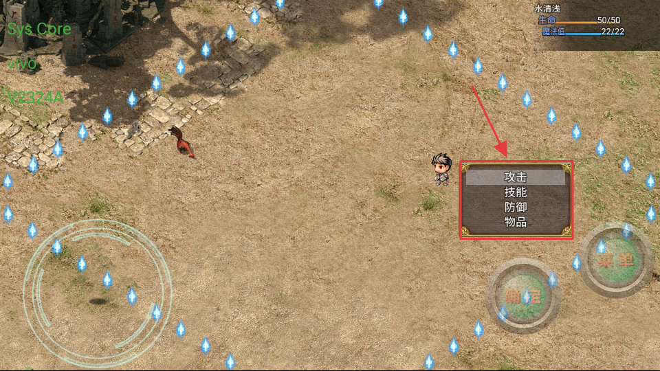 4、战斗中关注鸡的【HP-20】和自身【生命值-50/50】【魔法值-22/22】状态,确保顺利击杀。