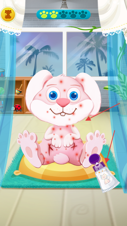 3、害虫清理完毕后,拿起护理膏,涂抹在兔子带有红点的部位,对其进行护理修复。