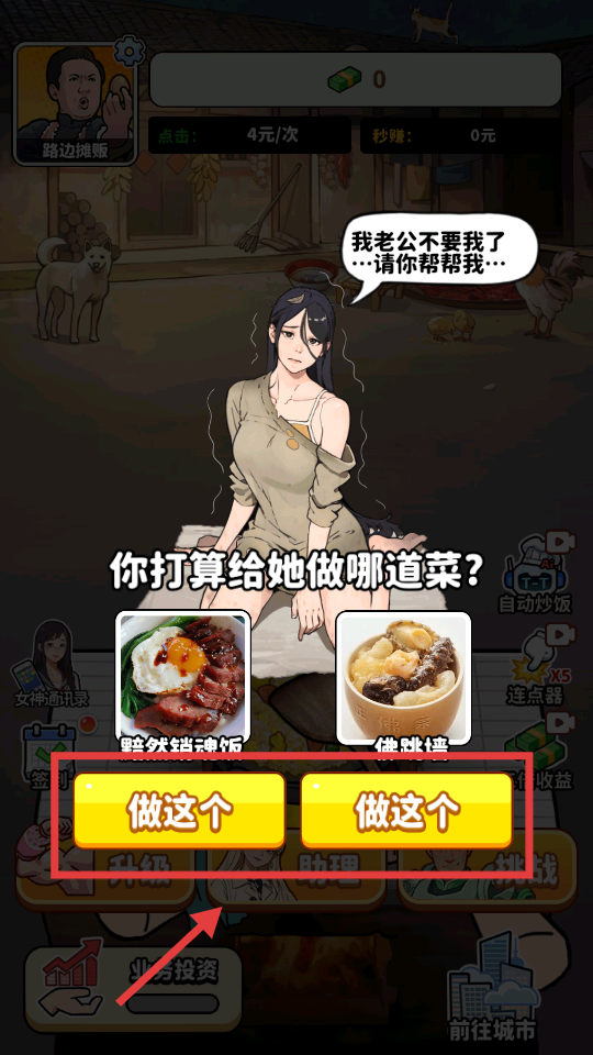 4、遇到求助角色时,从“黯然销魂饭”“佛跳墙”选菜,点击对应【做这个】按钮做菜。