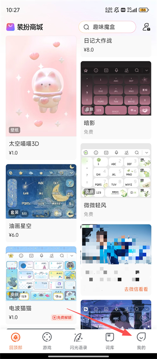 1、进入【搜狗输入法】主页后,点击底部的【我的】,方便后续找设置选项呢。