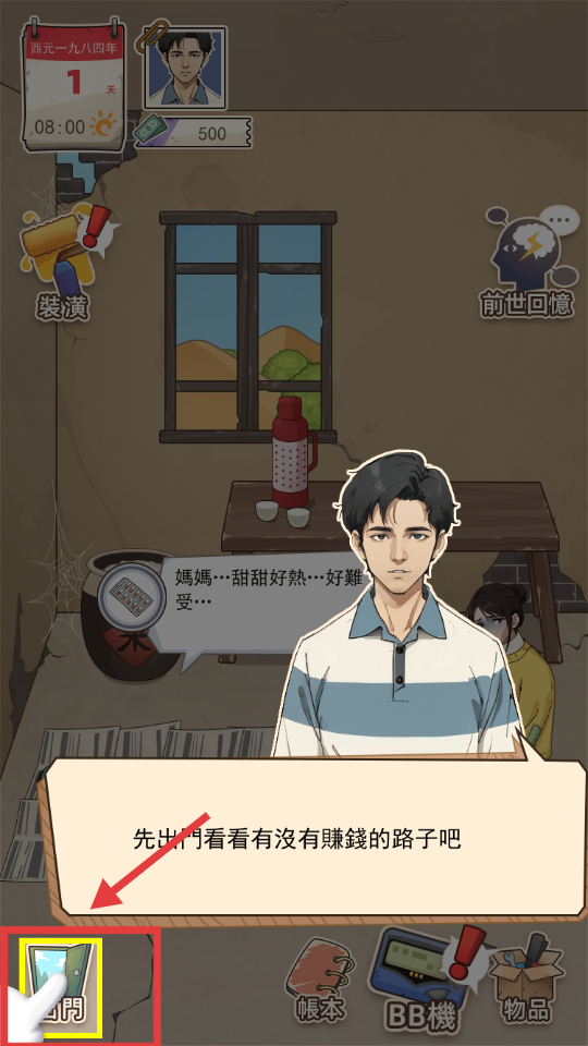 2、在初始场景中,点击左下角【出門】按钮,外出寻找赚钱的路子。
