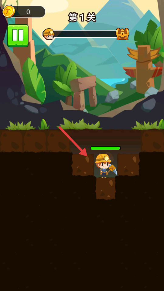2、在关卡里,操控矿工角色向下挖掘泥土,逐步深入地下探索。