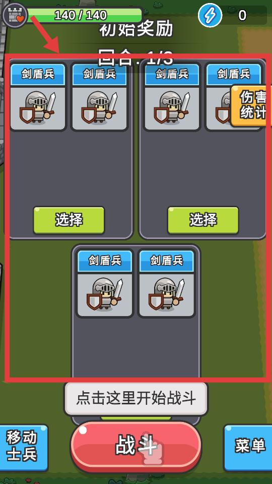 1、在初始奖励环节,选择【剑盾兵】,组建属于自己的士兵队伍。