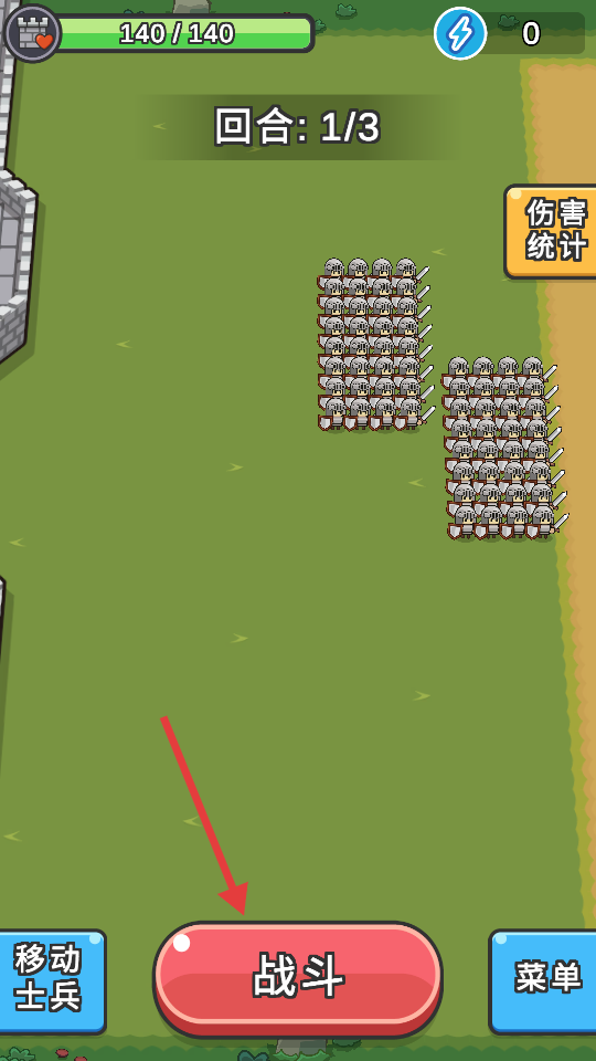 2、队伍组建完成后,点击红色【战斗】按钮,开启与敌人的对战回合。