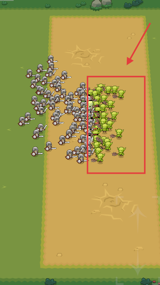 3、战斗过程中,操控【剑盾兵】与绿色敌人展开交锋,推进战斗进程。