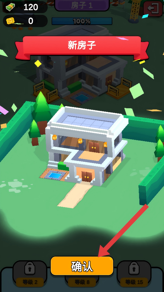 3、房子建造完成后,点击【确认】按钮,完成新房子的建造确认。