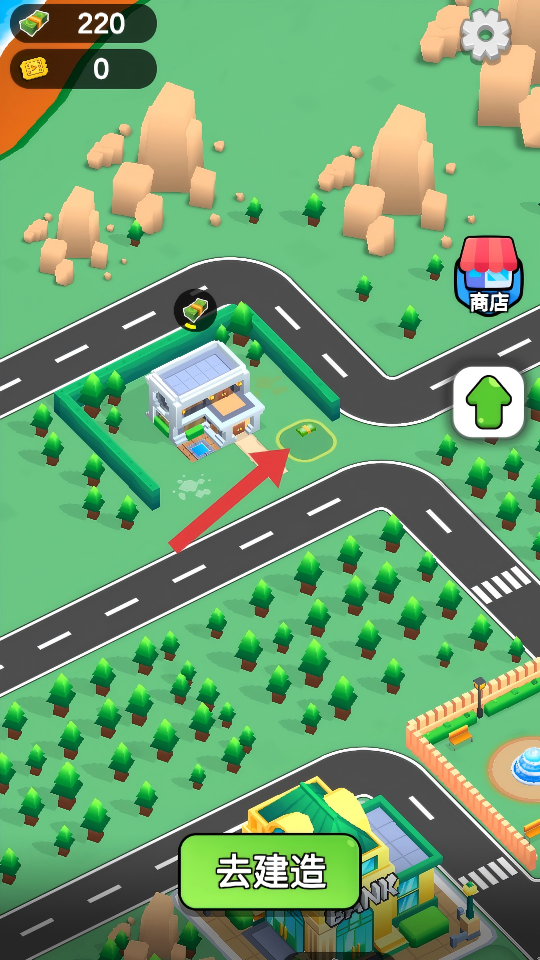4、回到地图界面,建造完的房子会产生收益,点击箭头位置进行拾取。