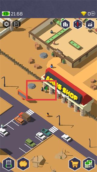 4、观察场景中【ARMS-SHOP】建筑旁的互动区域,完成对应操作可解锁新的收益模块。