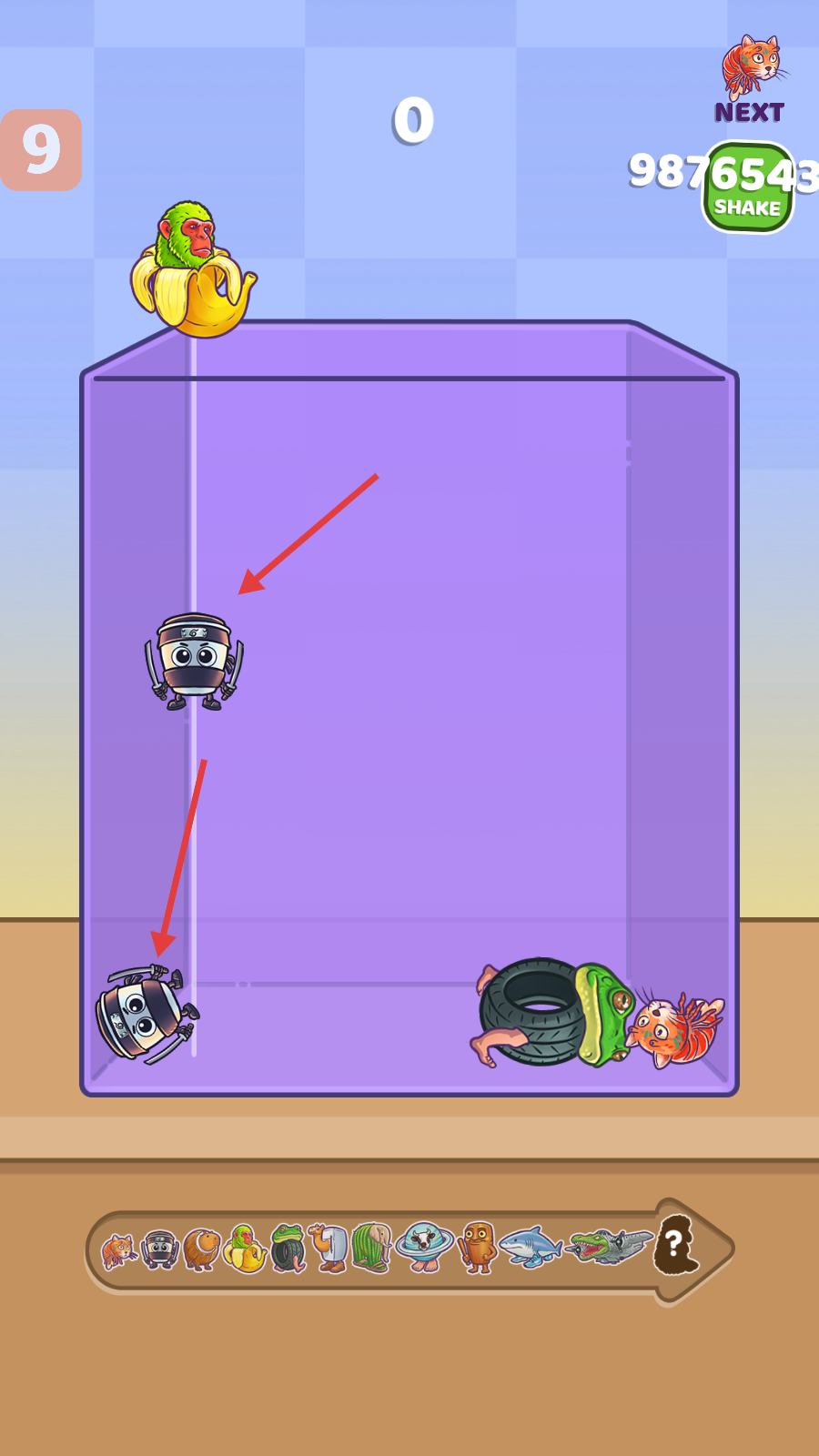 2、操控落下的角色,使其与同类型角色合并,注意落点位置。