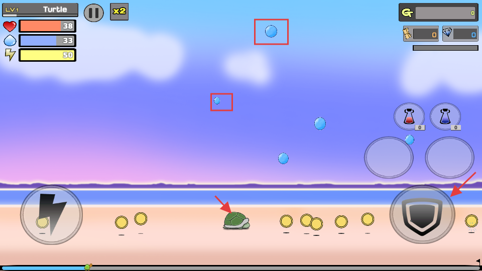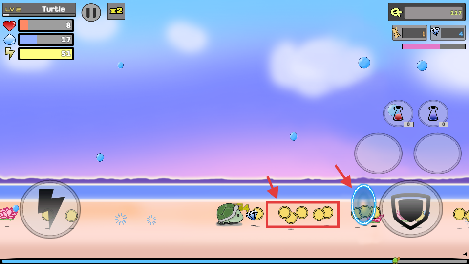 3、收集路上的金币,操控乌龟走到终点的传送门。