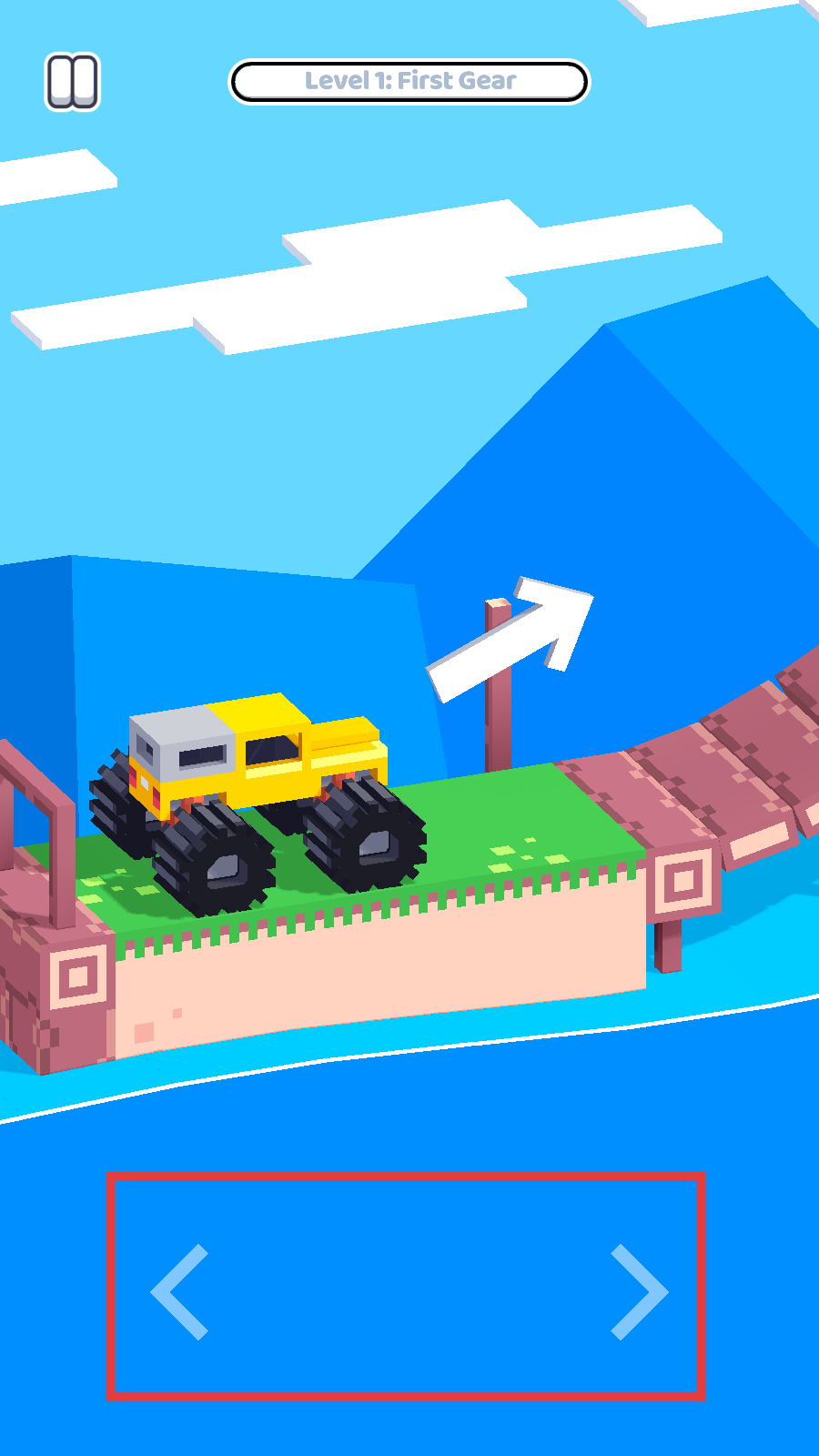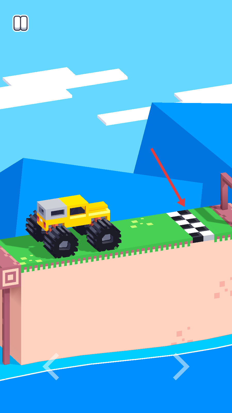 2、在游戏中,通过点击左右箭头按钮,控制黄色小车的行驶方向。