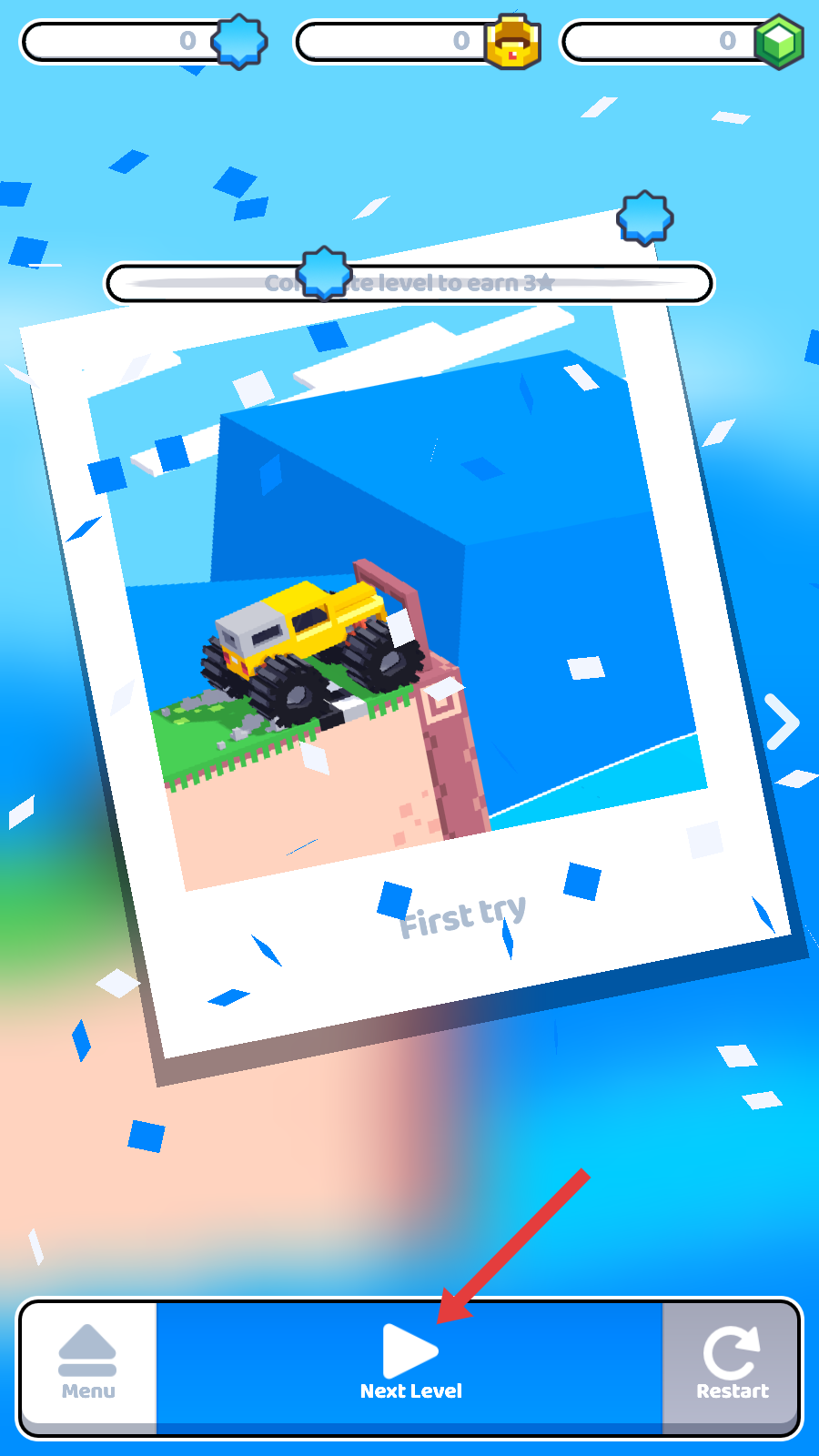 4、成功到达终点后,点击【NextLevel】按钮,进入下一关。