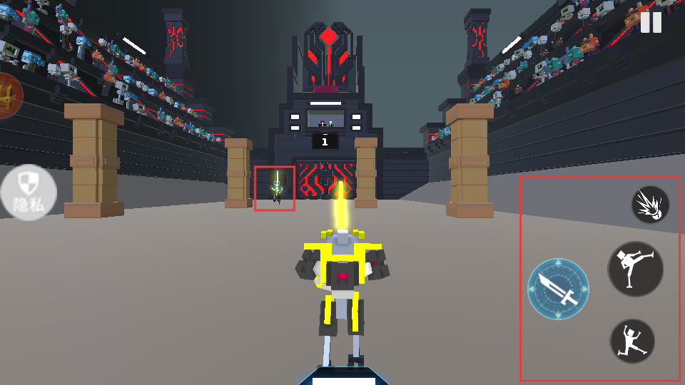3、利用右侧攻击、技能等按钮,对对手机器人释放攻击,展开格斗对决。