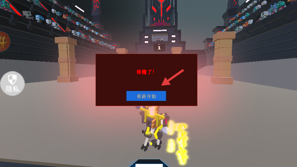 4、若战斗失败显示“你输了!”,点击“重新开始”按钮,再次挑战关卡。
