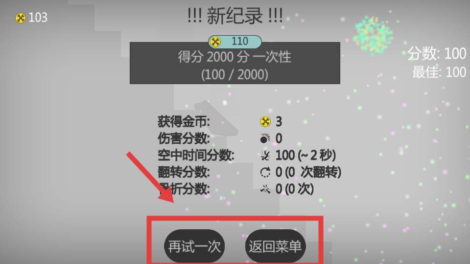 4、关卡结束后,可选择【再试一次】重新挑战该关卡,或点击【返回菜单】回到主界面。