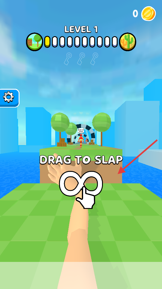 1、在“LEVEL1”关卡,根据“DRAGTOSLAP”提示,拖动手臂来准备拍打动作。