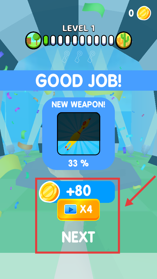 4、关卡完成后出现“GOODJOB!”,可获得金币(+80)等奖励,点击“NEXT”进入下一关。