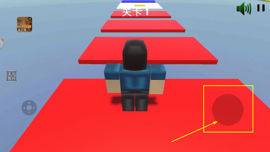 3、关卡中,通过右侧红色圆形按钮等操作方式,控制角色跳跃,在红色平台上前进。