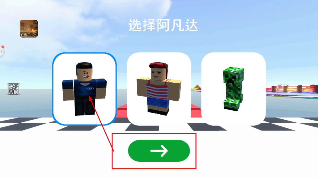 2、在“选择阿凡达”界面,挑选喜欢的角色形象,点击绿色箭头按钮,进入关卡。