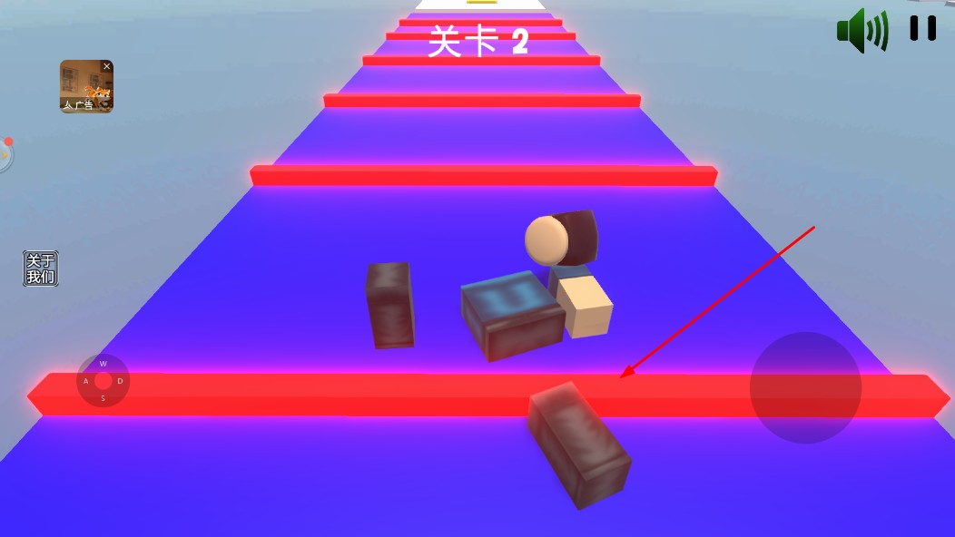 4、成功通过关卡1后,进入关卡2,继续操控角色,躲避障碍物,注意不要碰到地上【红色射线】。