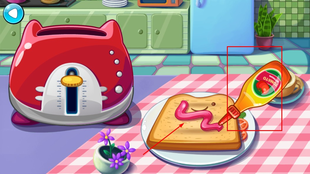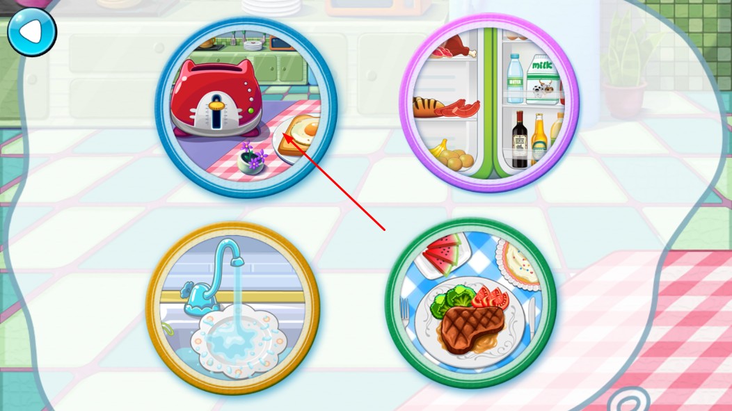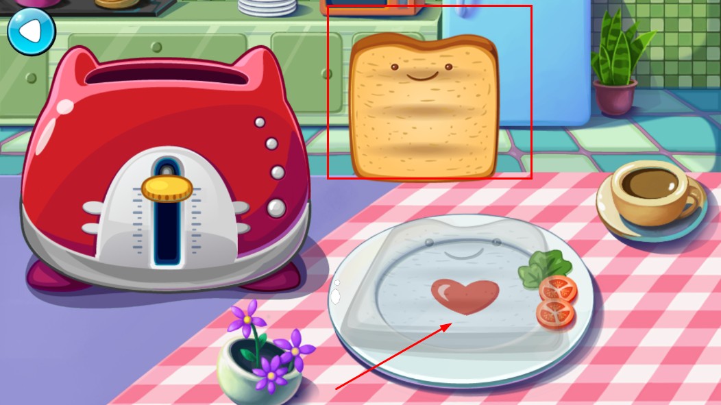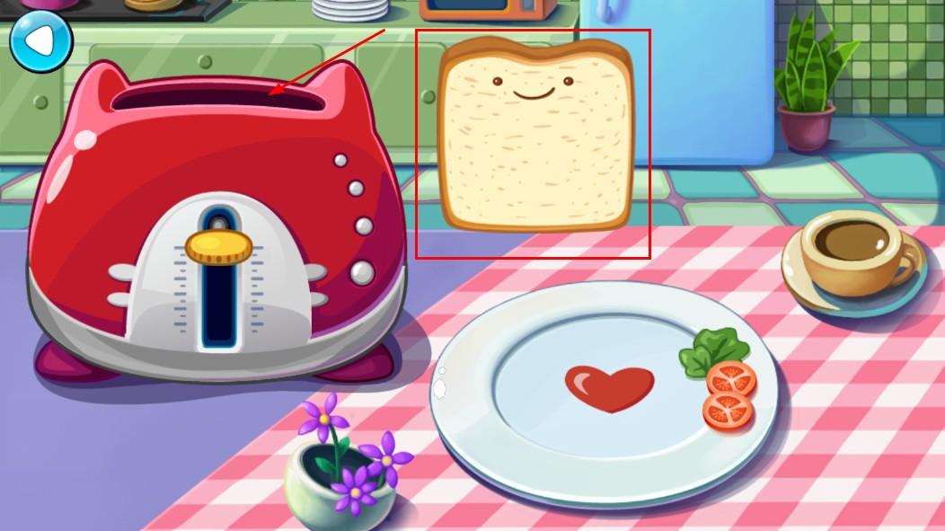 1、在玩赚美食游戏界面,选择带有烤面包机图案的选项,进入烤面包制作场景。