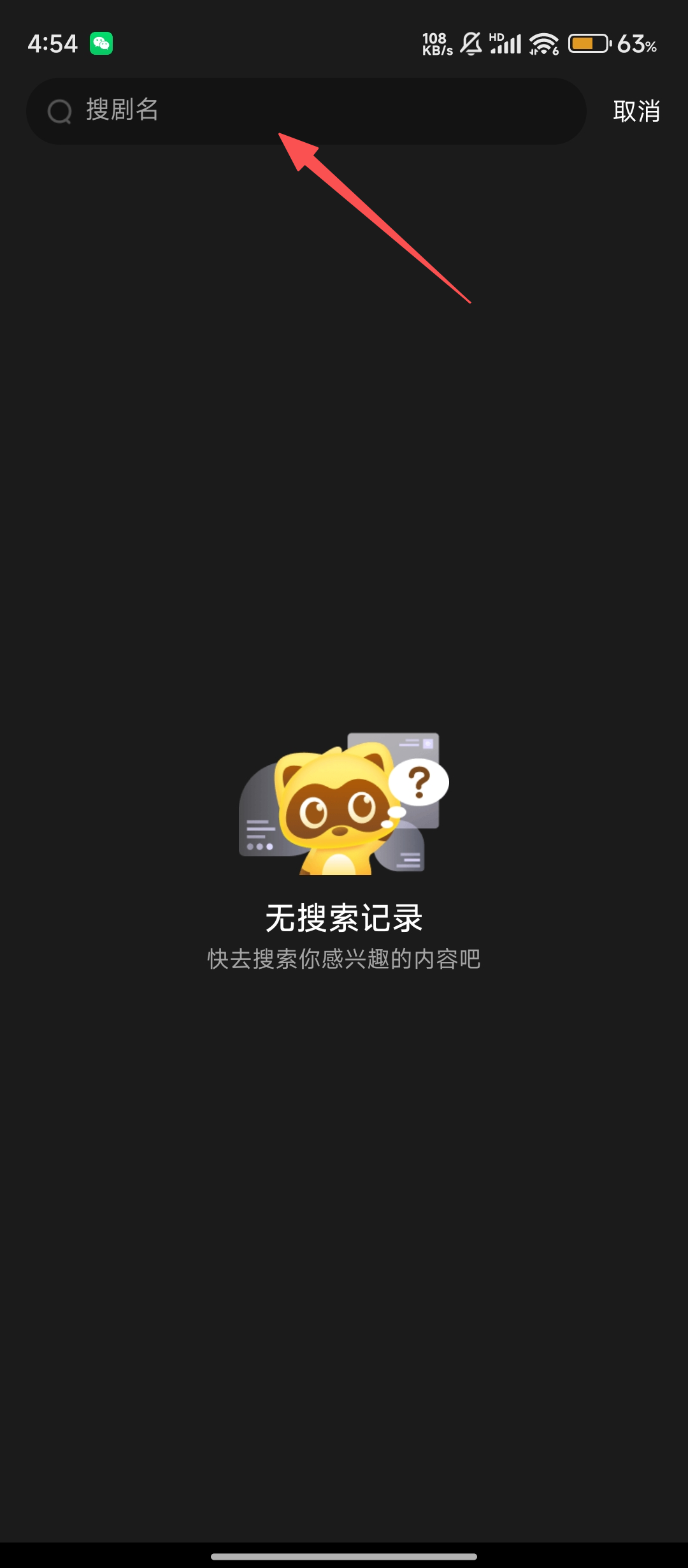 2、进入短剧专区后,找到顶部【搜剧名】搜索框,输入想看的短剧名称,便能找到对应的短剧啦。