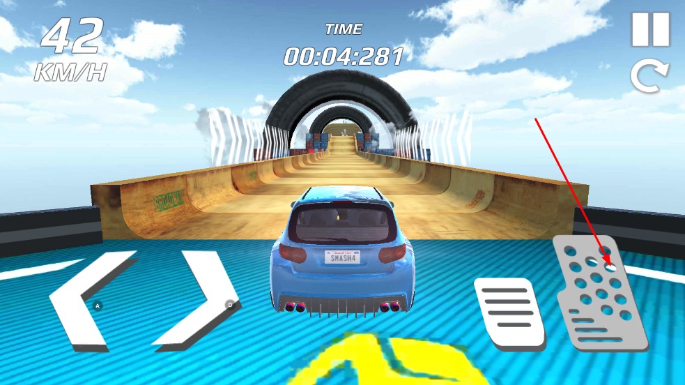 2、在特技赛道驾驶车辆时,点击油门踏板,控制车辆加速前进。