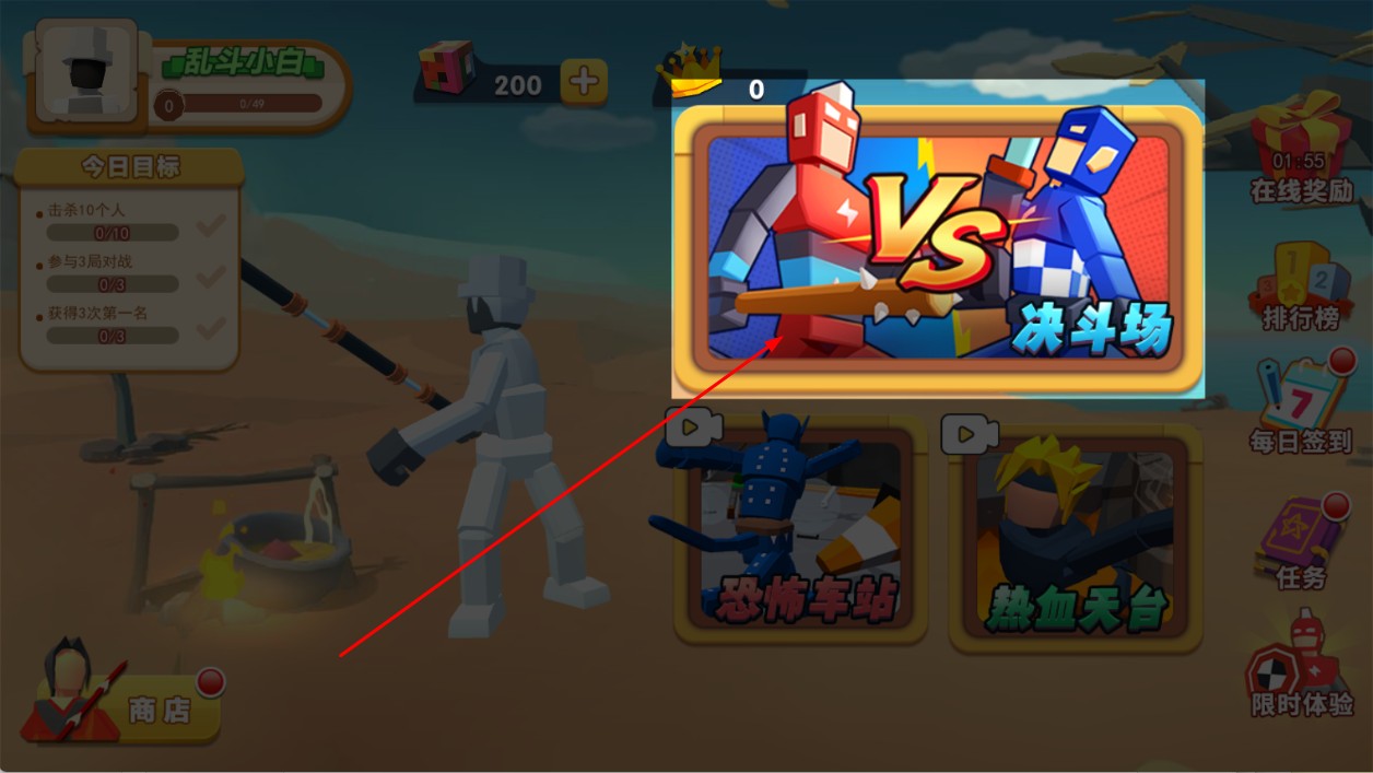 1、点击【决斗场】,进入对战模式,开启格斗挑战。