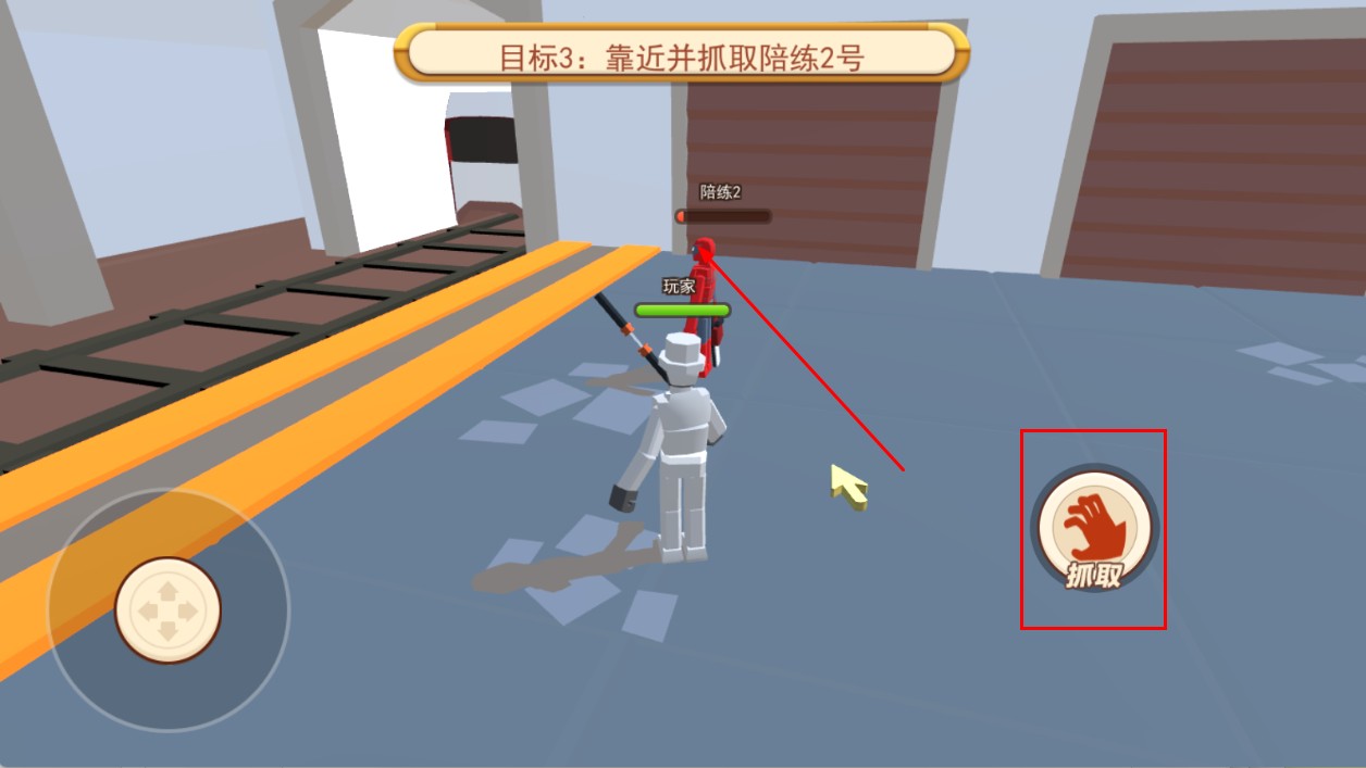 4、之后,操控角色靠近“陪练2号”,点击【抓取】按钮,完成抓取任务。
